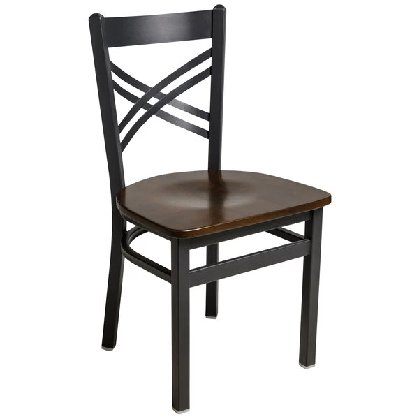 BFM Seating Akrin Sand Black Steel Side Chair With Cross Steel Back And Walnut Wooden Seat