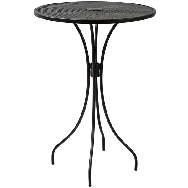 BFM Seating Barnegat 30″ Round Black Steel Outdoor / Indoor Dining Height Table With Umbrella Hole