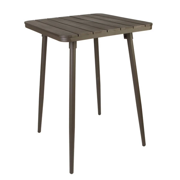 BFM Seating Bayview 32″ Square Bar Height Table With Bronze Powder Coat Aluminum Frame And Brown Synthetic Teak Top