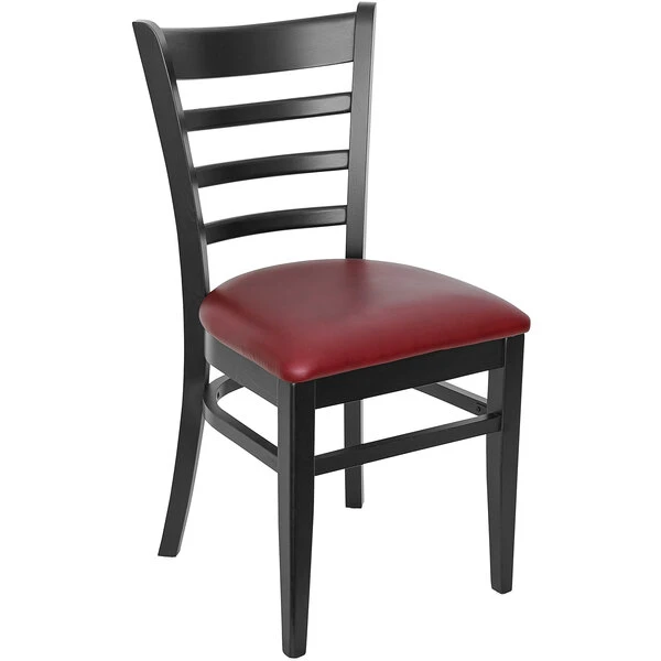 BFM Seating Berkeley Black Beechwood Ladder Back Side Chair With 2″ Burgundy Vinyl Seat