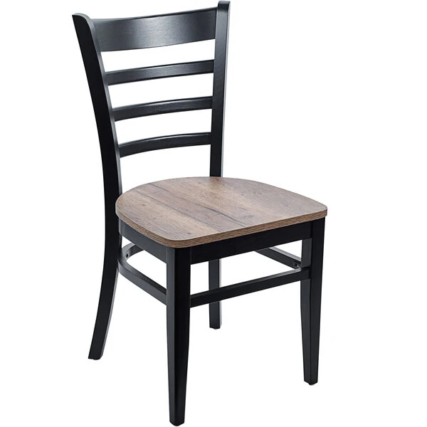 BFM Seating Berkeley Black Beechwood Ladder Back Side Chair With Relic Knotty Pine Seat
