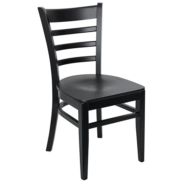BFM Seating Berkeley Black Beechwood Ladder Back Side Chair With Veneer Wood Seat