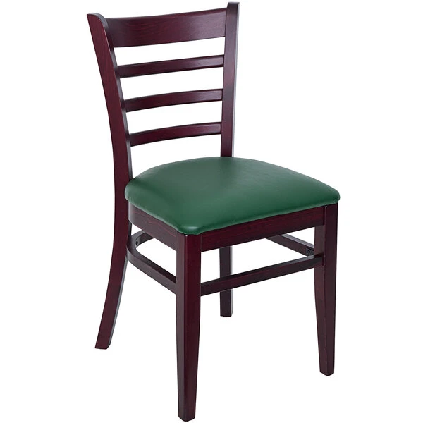 BFM Seating Berkeley Dark Mahogany Beechwood Ladder Back Side Chair With 2″ Green Vinyl Seat