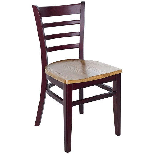 BFM Seating Berkeley Dark Mahogany Beechwood Ladder Back Side Chair With Autumn Ash Wood Seat