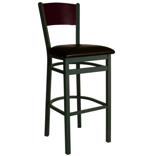 BFM Seating Dale Sand Black Metal Bar Height Chair With Mahogany Finish Wooden Back And 2″ Dark Brown Vinyl Seat