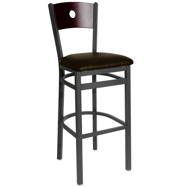 BFM Seating Darby Sand Black Metal Bar Height Chair With Mahogany Wooden Back And 2″ Dark Brown Vinyl Seat