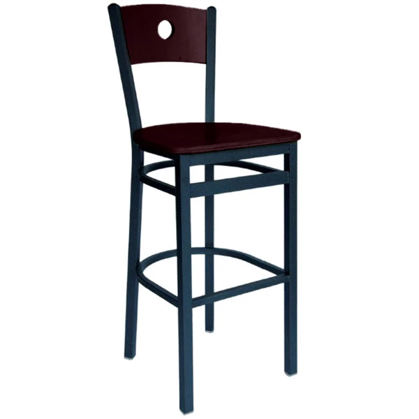 BFM Seating Darby Sand Black Metal Bar Height Chair With Mahogany Wooden Back And Seat