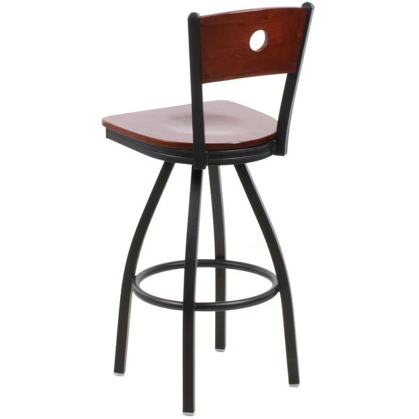 BFM Seating Darby Sand Black Metal Bar Height Chair With Mahogany Wooden Back And Swivel Seat