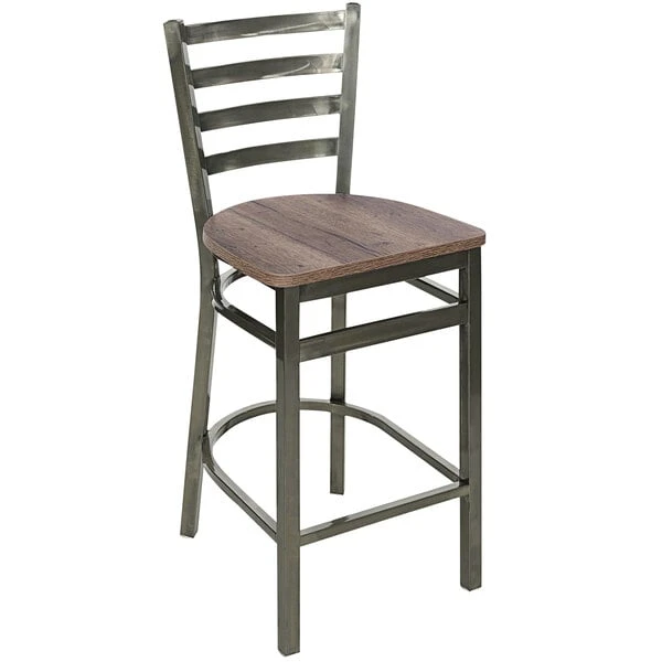 BFM Seating Lima Clear Coated Steel Counter Height Barstool With Relic Knotty Pine Seat