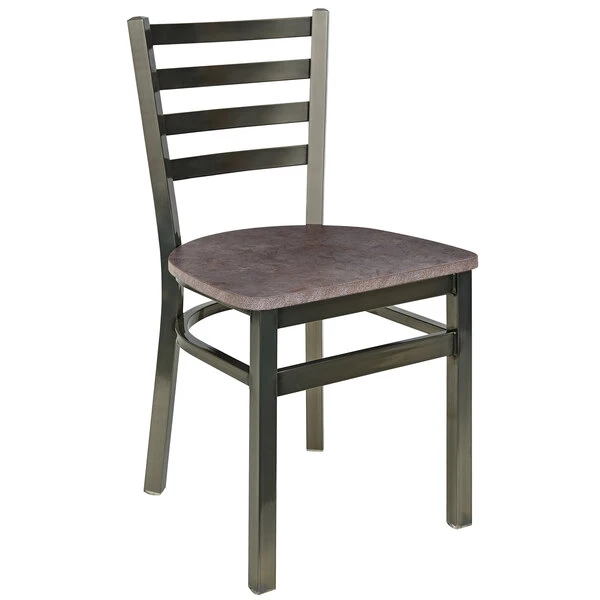 BFM Seating Lima Clear Coated Steel Ladder Back Side Chair With Relic Rustic Copper Seat