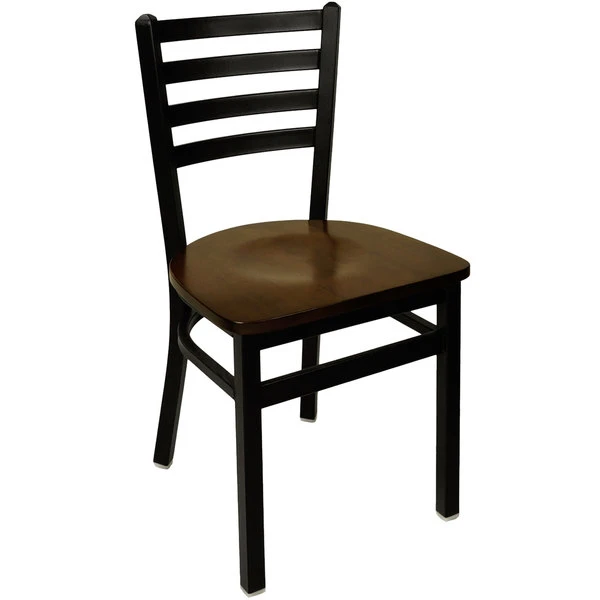 BFM Seating Lima Metal Ladder Back Side Chair With Walnut Wooden Seat