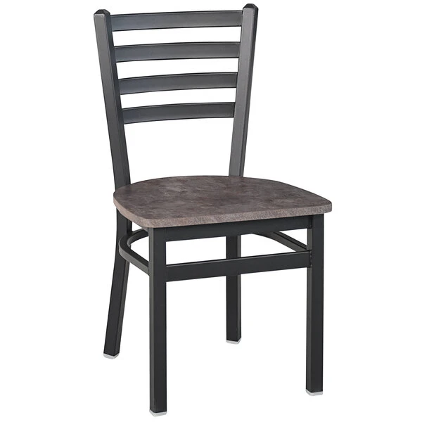 BFM Seating Lima Sand Black Steel Ladder Back Side Chair With Relic Rustic Copper Seat