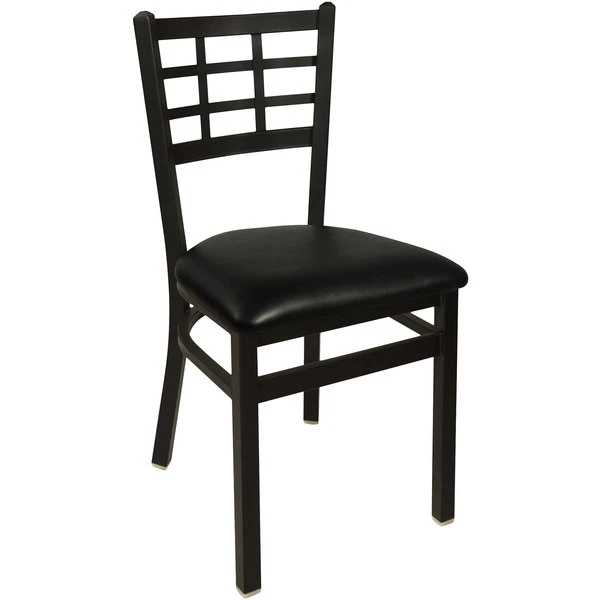 BFM Seating Marietta Sand Black Steel Side Chair With 2″ Black Vinyl Seat