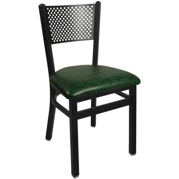 BFM Seating Polk Sand Black Steel Side Chair With 2″ Green Vinyl Seat