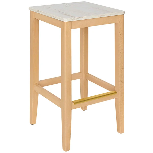 BFM Seating Stockton Natural Beechwood Square Backless Barstool With Relic Antique Wash Seat