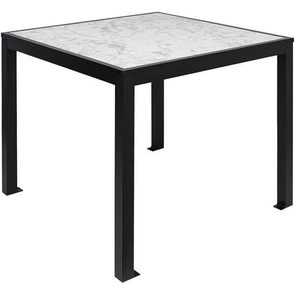BFM Seating Surf 32″ Square Black Aluminum Bolt-Down Carrara Top Standard Height Table