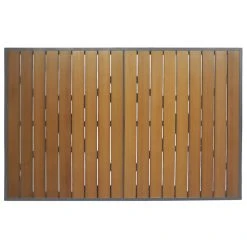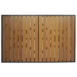 BFM Seating Longport 32″ X 48″ Black Aluminum Bolt-Down Bar Height Table With Synthetic Teak Top