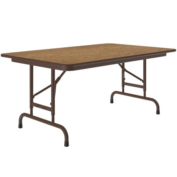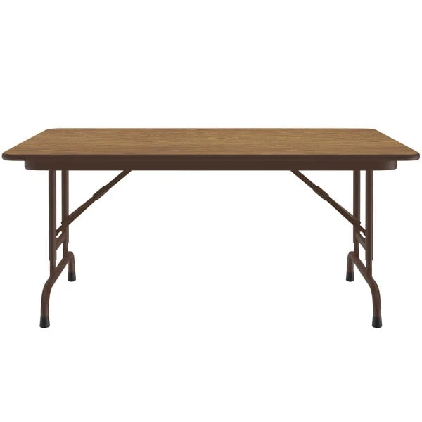 Correll 30″ X 48″ Medium Oak Light Duty Melamine Adjustable Height Folding Table With Brown Frame