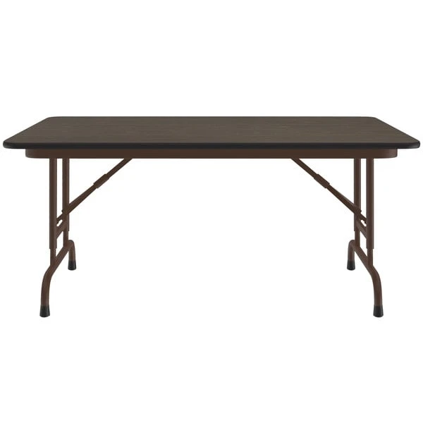 Correll 30″ X 48″ Walnut Light Duty Melamine Adjustable Height Folding Table With Brown Frame