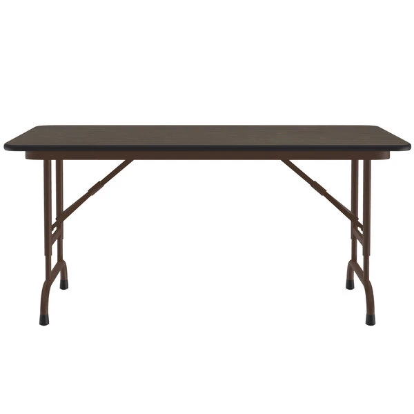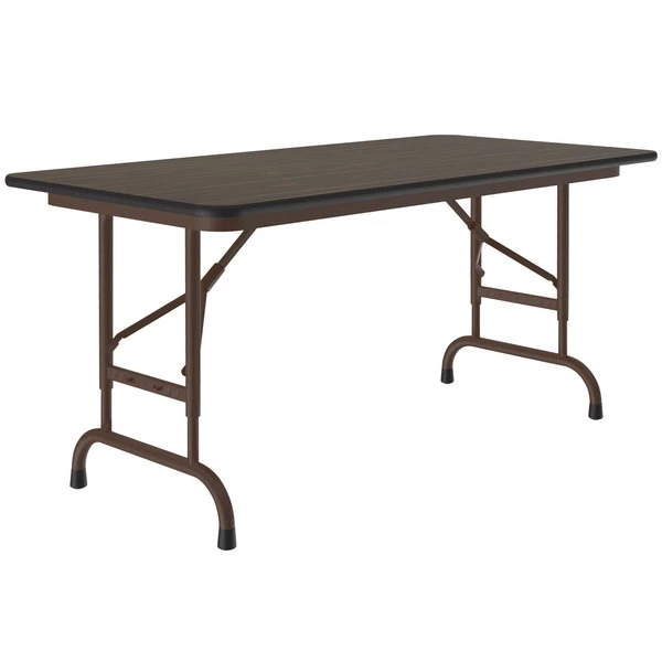 Correll Folding Table, 24″ X 48″ Melamine Top, Adjustable Height, Walnut