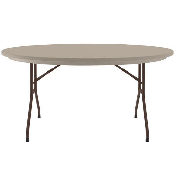 Correll Round Heavy-Duty Folding Table, 60″ Blow-Molded Plastic, Mocha Granite