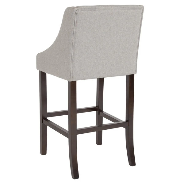 Flash Furniture CH-182020-T-30-LTGY-F-GG Carmel Series Light Gray Tufted Fabric Bar Stool With Walnut Frame And Nail Trim Accent