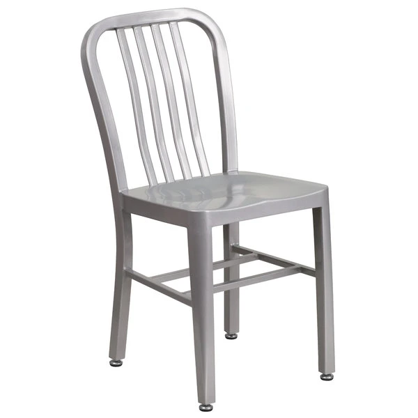 Flash Furniture CH-61200-18-SIL-GG Silver Metal Indoor / Outdoor Chair With Vertical Slat Back