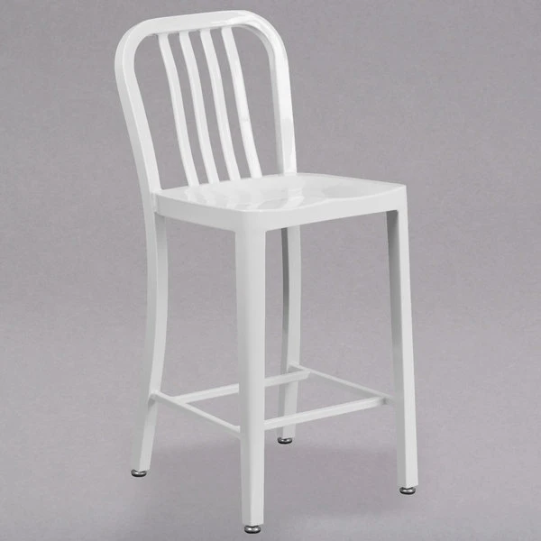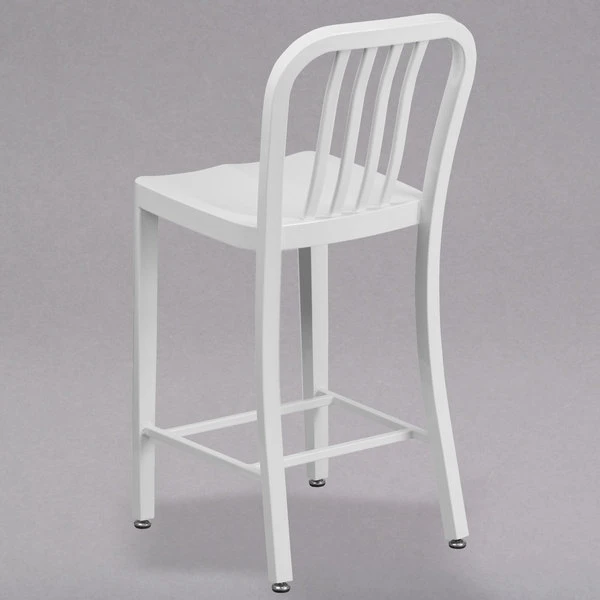 Flash Furniture CH-61200-24-WH-GG 24″ White Metal Indoor / Outdoor Counter Height Stool With Vertical Slat Back