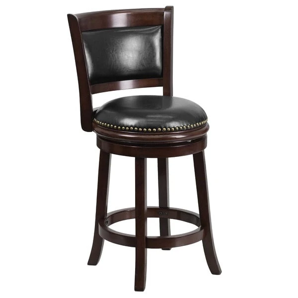 Flash Furniture TA-61024-CA-CTR-GG Cappuccino Wood Counter Height Panel Back Stool With Black Leather Swivel Seat