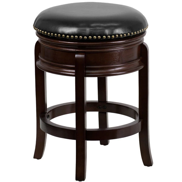 Flash Furniture TA-68824-CA-CTR-GG Cappuccino Wood Counter Height Stool With Black Leather Swivel Seat