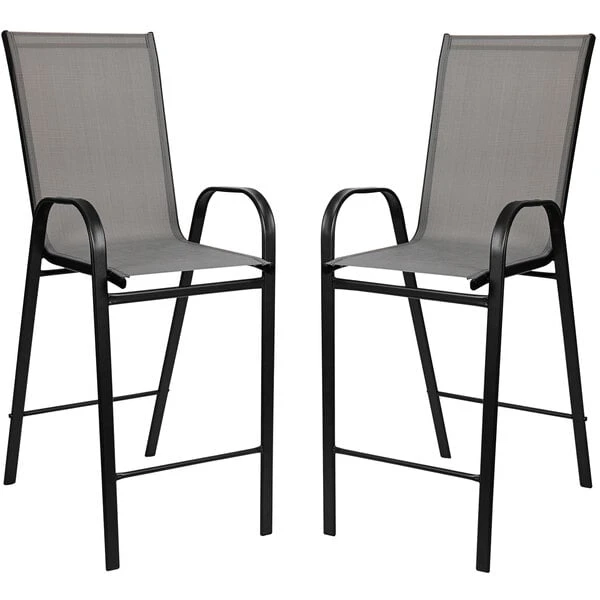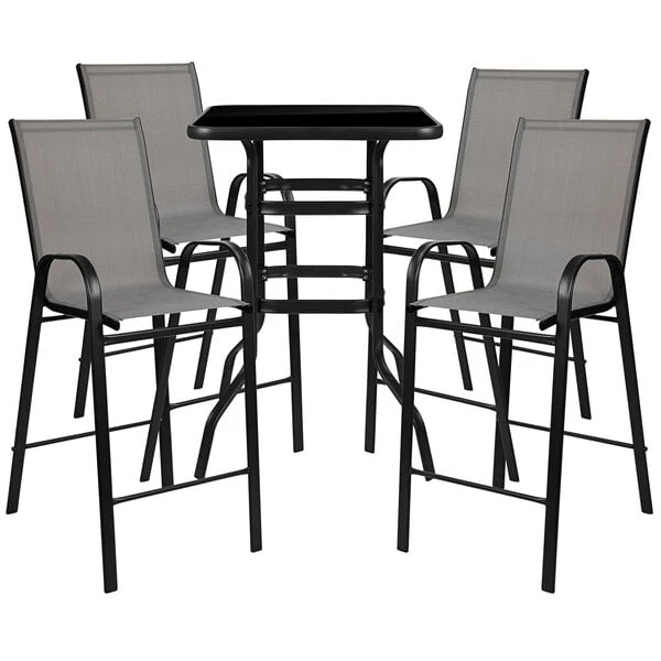 Flash Furniture TLH-073H092H4-GR-GG 27 1/2″ X 27 1/2″ X 39 1/2″ Outdoor Glass Bar Table Set With 4 Gray Chairs
