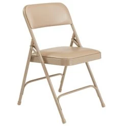 National Public Seating 1201 Beige Metal Folding Chair With 1 1/4″ French Beige Vinyl Padded Seat