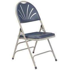 National Public Seating 1115 Gray Metal Folding Chair With Dark Blue Plastic Seat