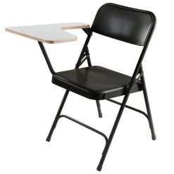 National Public Seating 5210R Black Steel Premium Folding Chair With Right Gray Tablet Arm