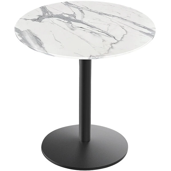 Holland Bar Stool EuroSlim 36″ Round White Marble Indoor / Outdoor Standard Height Table With Round Base