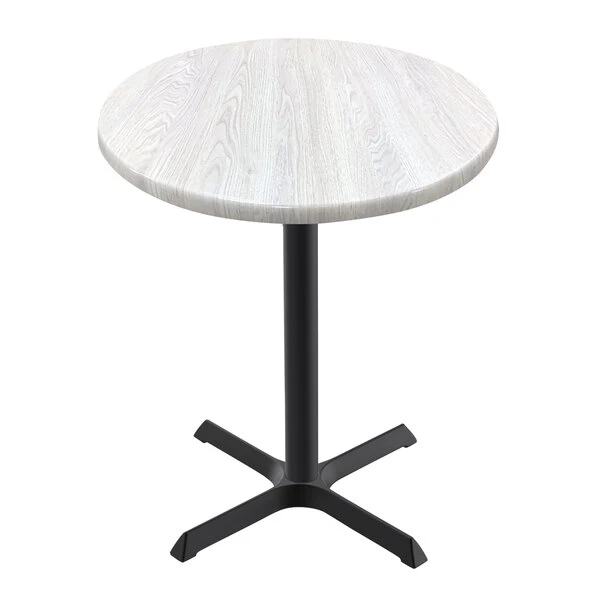 Holland Bar Stool OD211-3030BWOD30RWA EnduroTop 30″ Round White Ash Wood Laminate Outdoor / Indoor Standard Height Table With Cross Base