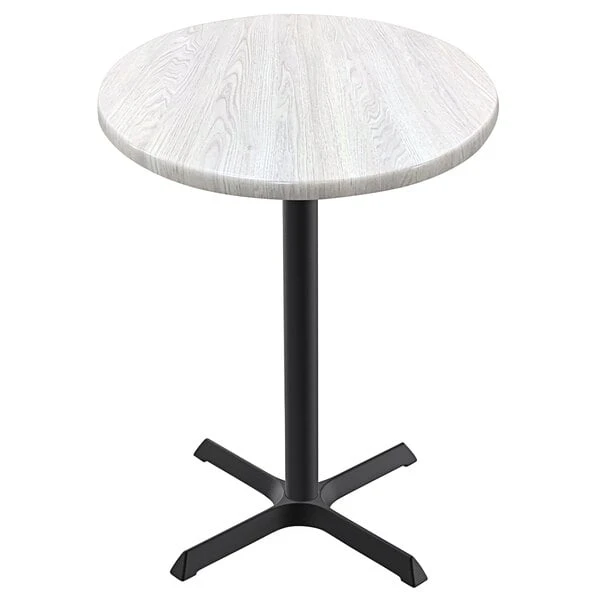 Holland Bar Stool OD211-3042BWOD30RWA EnduroTop 30″ Round White Ash Wood Laminate Outdoor / Indoor Bar Height Table With Cross Base