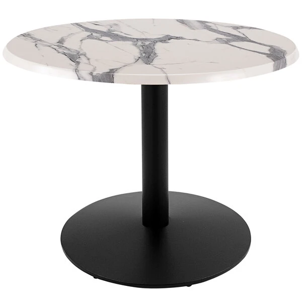 Holland Bar Stool OD214-2230BWOD30RWM 30″ Round White Marble Laminate Outdoor / Indoor Standard Height Table With Round Base
