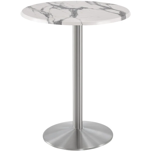 Holland Bar Stool OD214-2242SSOD30RWM 30″ Round White Marble Laminate Outdoor / Indoor Bar Height Table With Stainless Steel Round Base