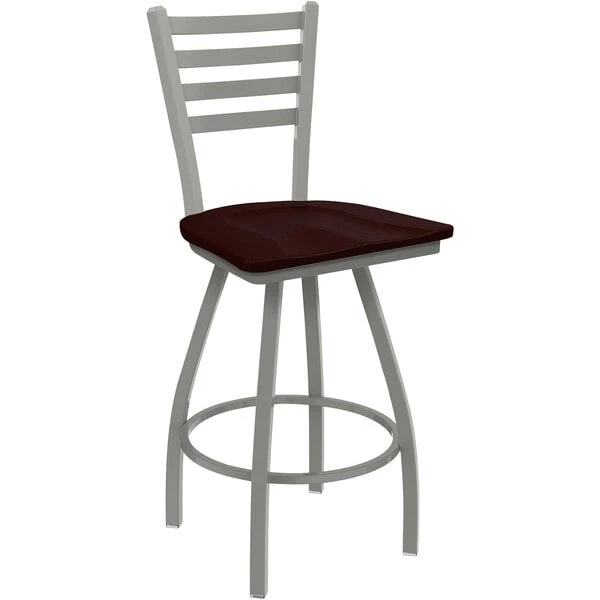 Holland Bar Stool XL 410 Jackie 30″ Ladderback Swivel Bar Stool With Anodized Nickel Finish And Dark Cherry Oak Seat