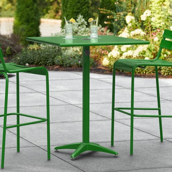 Lancaster Table & Seating 32″ X 32″ Green Powder-Coated Aluminum Bar Height Outdoor Table With Umbrella Hole