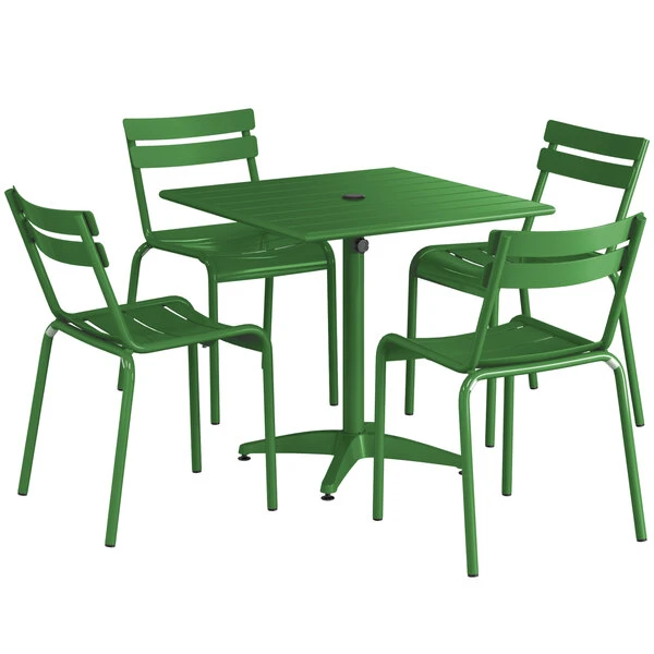 Lancaster Table & Seating 32″ X 32″ Green Powder-Coated Aluminum Standard Height Outdoor Table With Umbrella Hole And 4 Side Chairs