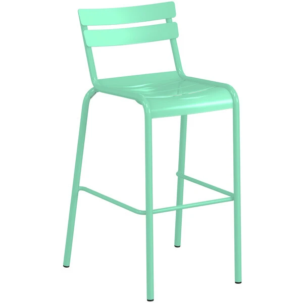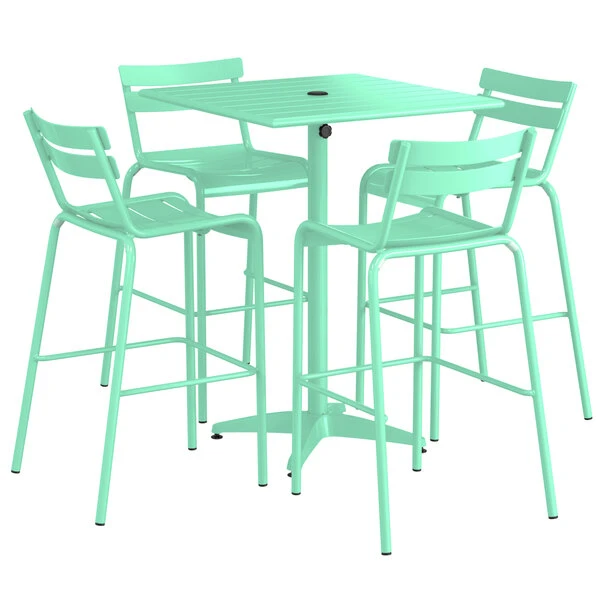 Lancaster Table & Seating 32″ X 32″ Seafoam Powder-Coated Aluminum Bar Height Outdoor Table With Umbrella Hole And 4 Barstools