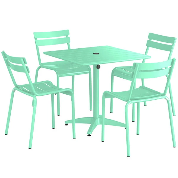 Lancaster Table & Seating 32″ X 32″ Seafoam Powder-Coated Aluminum Standard Height Outdoor Table With Umbrella Hole And 4 Side Chairs