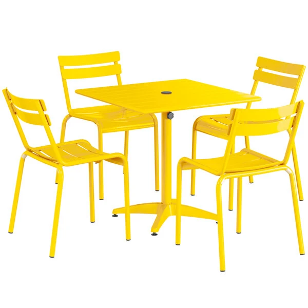 Lancaster Table & Seating 32″ X 32″ Yellow Powder-Coated Aluminum Standard Height Outdoor Table With Umbrella Hole And 4 Side Chairs