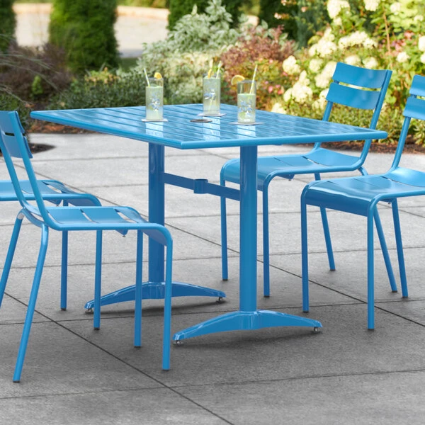 Lancaster Table & Seating 32″ X 48″ Blue Powder-Coated Aluminum Dining Height Outdoor Table With Umbrella Hole