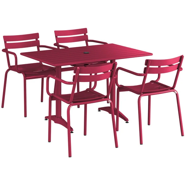 Lancaster Table & Seating 32″ X 48″ Sangria Powder-Coated Aluminum Standard Height Outdoor Table With Umbrella Hole And 4 Arm Chairs