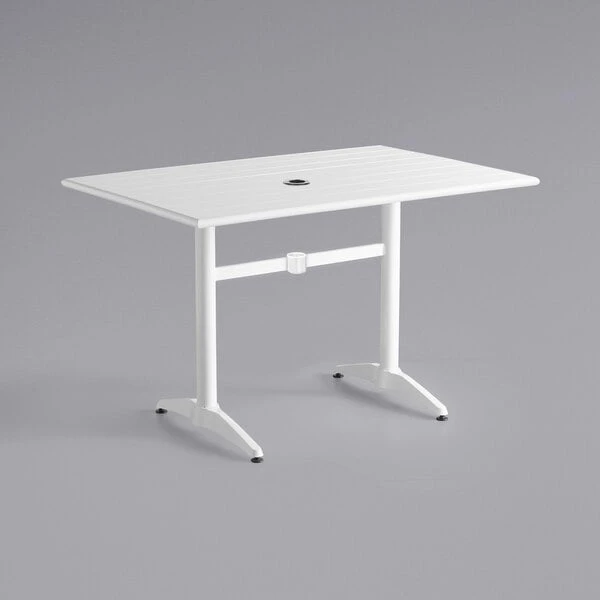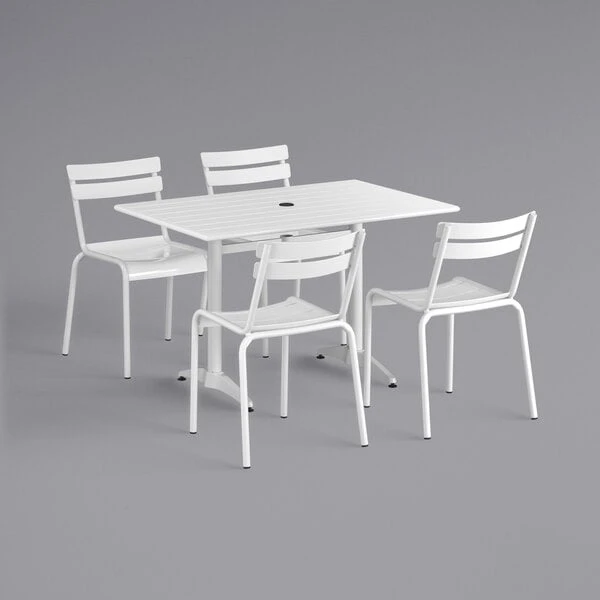 Lancaster Table & Seating 32″ X 48″ White Powder-Coated Aluminum Dining Height Outdoor Table With Umbrella Hole And 4 Side Chairs