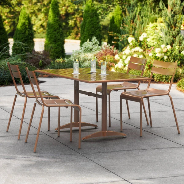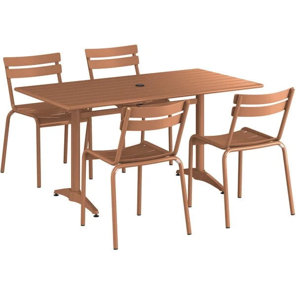 Lancaster Table & Seating 32″ X 60″ Brown Powder-Coated Aluminum Dining Height Outdoor Table With Umbrella Hole And 4 Side Chairs
