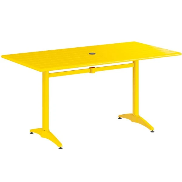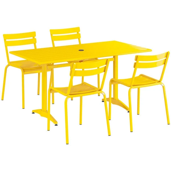 Lancaster Table & Seating 32″ X 60″ Yellow Powder-Coated Aluminum Standard Height Outdoor Table With Umbrella Hole And 4 Side Chairs